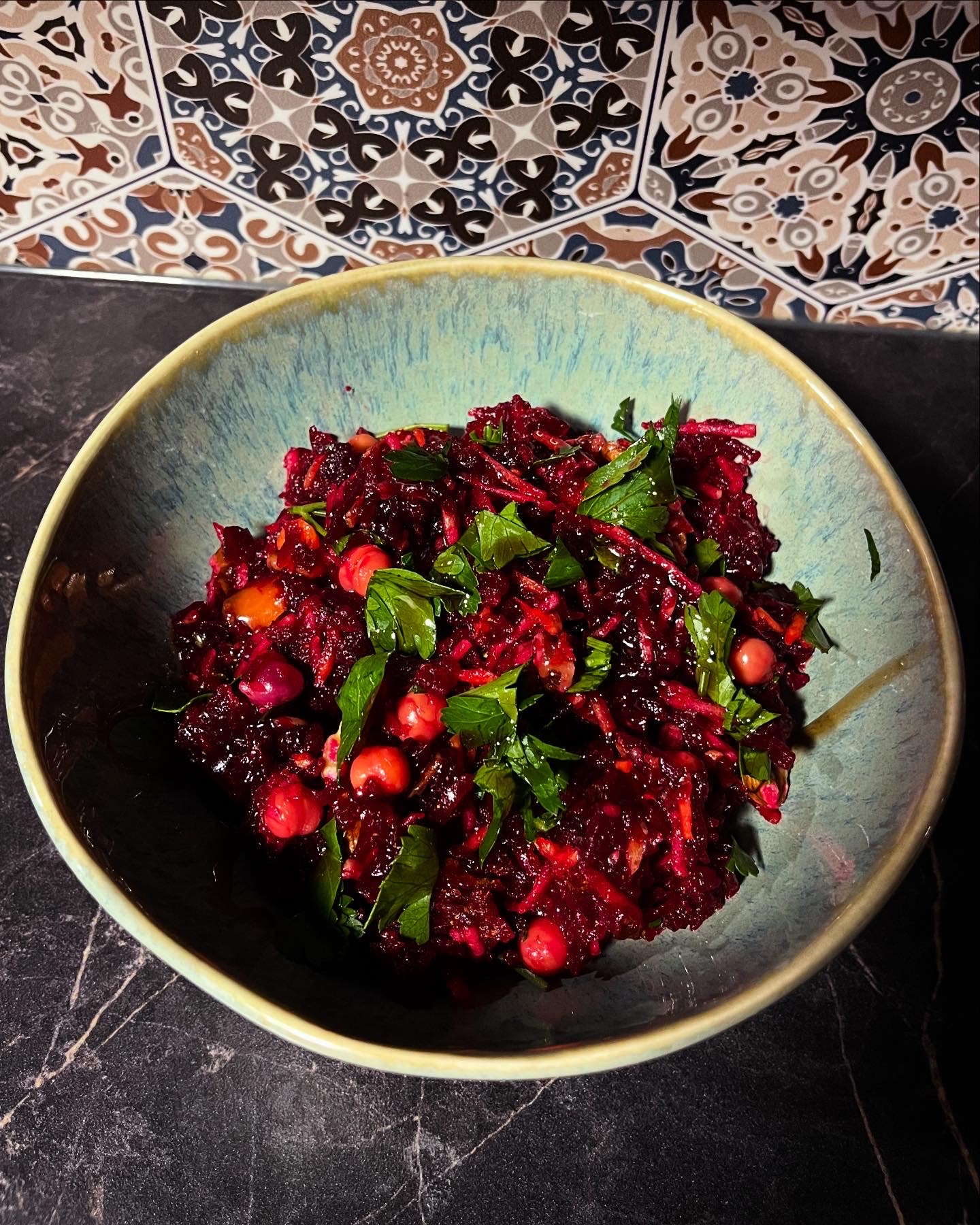 – Dressing: 3EL Öl, 2EL Apfelessig, Kräuter, 1TL Zitronensaft, 1EL Agavendicksaft, 1TL Granatapfelsirup, 1TL Currypulver, 1TL Knoblauch-Pfeffer @ostmanngewuerze , Prise Salz